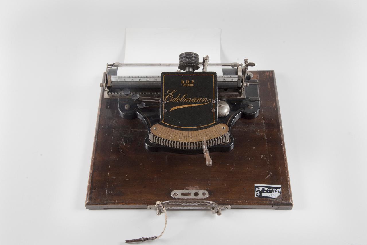 | Notizie storico-critiche | La macchina Edelmann combinava l'utilizzo del cilindro portacaratteri con il movimento di un puntatore nel tentativo di superare alcuni limiti tipici delle macchine ad una sola leva, come la lentezza, la non visibilità della scrittura e la poca funzionalità nella duplicazione delle copie. Il cilindro portacaratteri fu appositamente posizionato ad una certa distanza dal rullo per incrementarne la potenza dell'impatto sul rullo stesso; in questo modo era possibile realizzare più copie alla volta. Negli ultimi anni di produzione, durante la prima Guerra Mondiale, venne realizzato un modello che potesse essere utilizzato anche dagli invalidi di guerra. Le macchine Edelmann apparvero sul mercato nel 1897, prodotte dalla Wernicke, Edelmann & Company di Berlino, successivamente riorganizzata come Edelmann Typewriter Company. La produzione passò infine alla Julius Pintsch & Company di Francoforte sul Meno fino alla fine agli anni '20 del 1900. |
